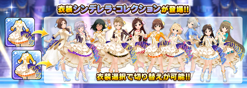 新衣装「シンデレラ・コレクション」と交換することができる「シンデレラ・コレクションチケット」が追加されました。